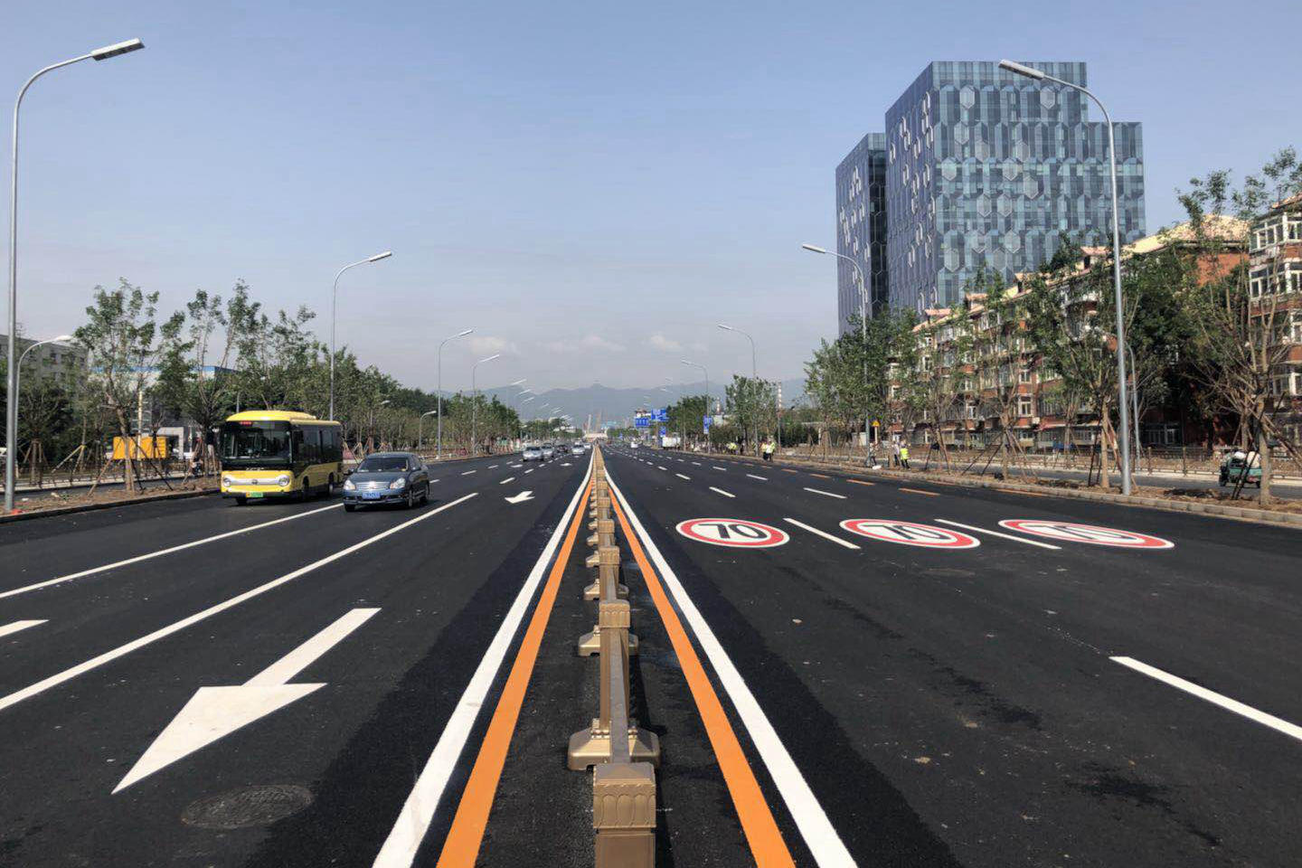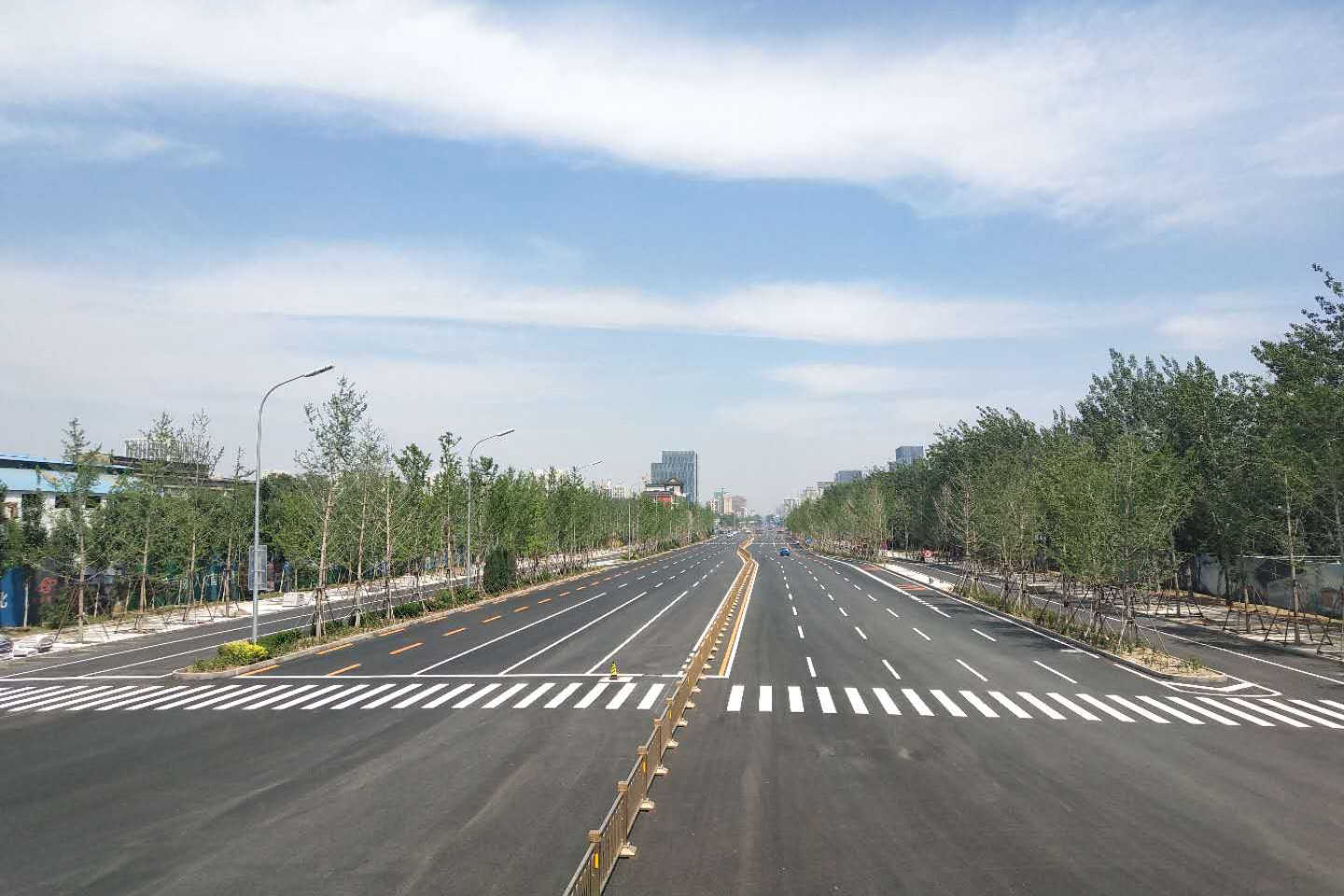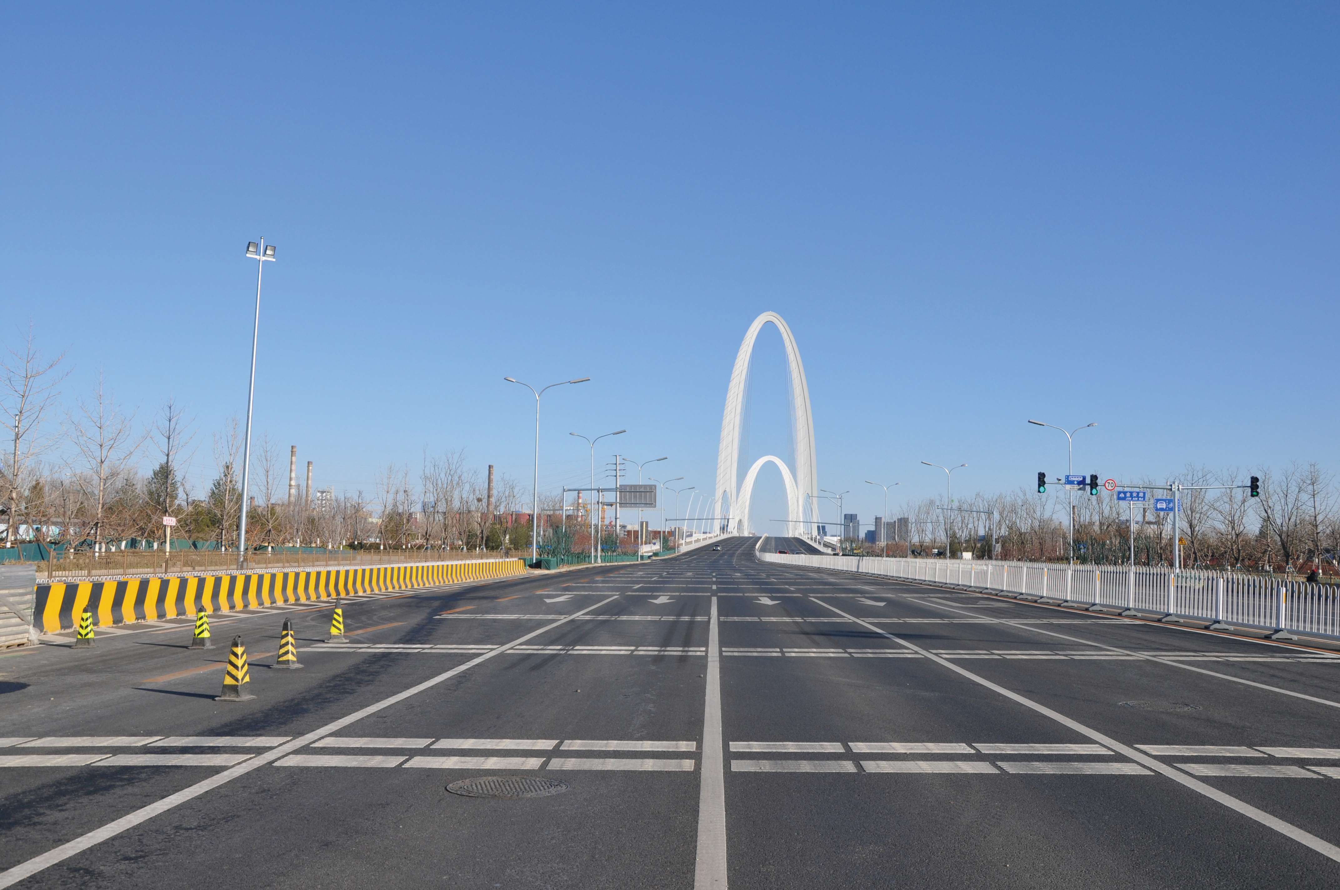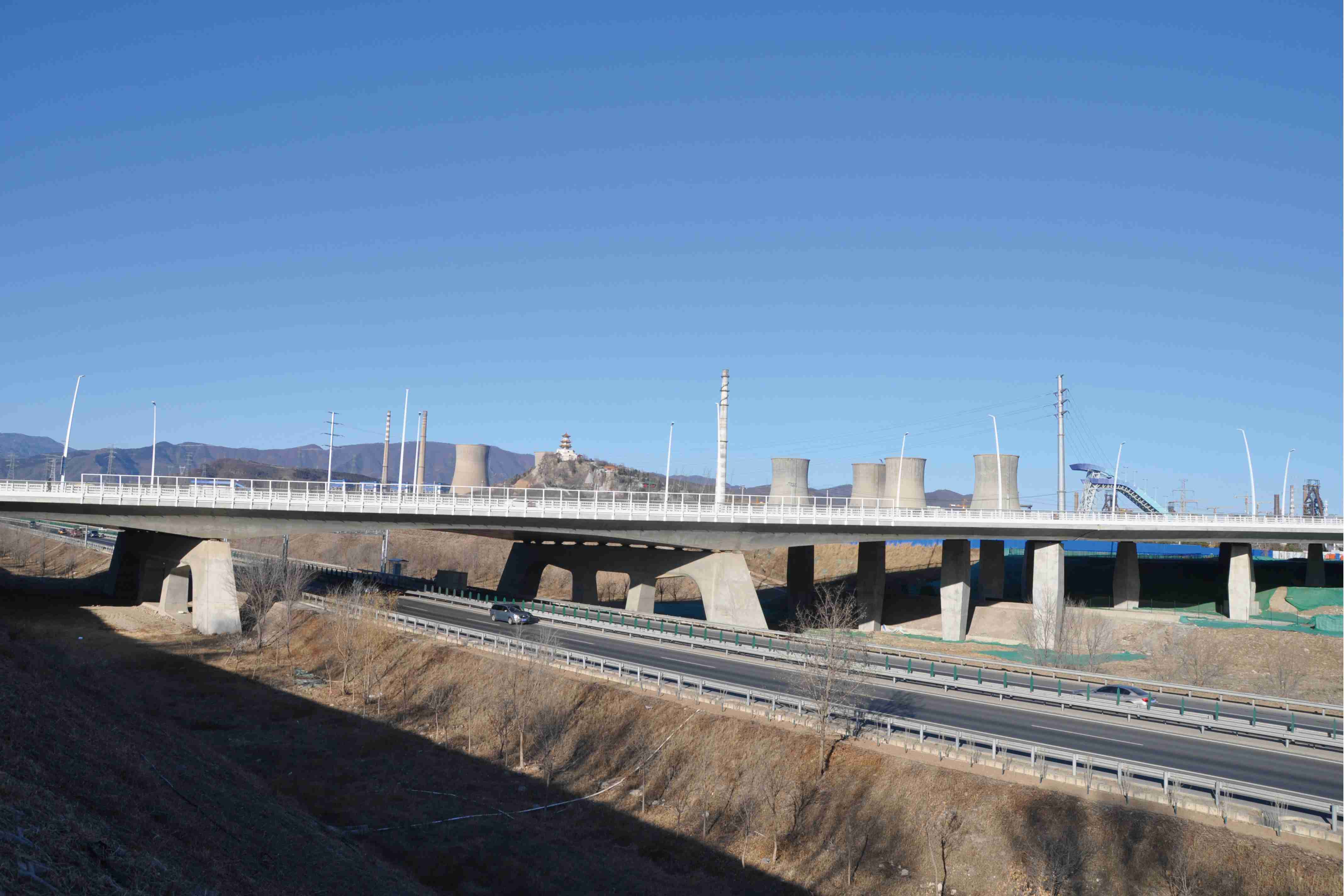 長安街西延線工程東起石景山區(qū)古城大街,向西經首鋼主廠區(qū)、上跨豐沙鐵路、永定河及六環(huán)路至門頭溝區(qū)三石路,全長約6.4公里。長安街西延工程道路標準為城市主干路,紅線寬60至100米,古城大街至六環(huán)路西側路安排4上4下8條機動車道,包括外側兩條公交專用車道,六環(huán)路西側路至三石路為包含兩條公交專用道的3上3下6條機動車道。長安街西延道路橫跨永定河,新建跨永定河特大橋一座。長安街西延道路的輔路系統(tǒng)及雨水、綠化、照明、交通工程、環(huán)保、工程改移等工程同步實施。長安街西延跨永定河大橋景觀性標志建筑——雙塔斜拉和剛構組合體系橋“和力之門”,橋梁全長1230米,斷面寬度47米,橋梁總面積5.82萬平方米。